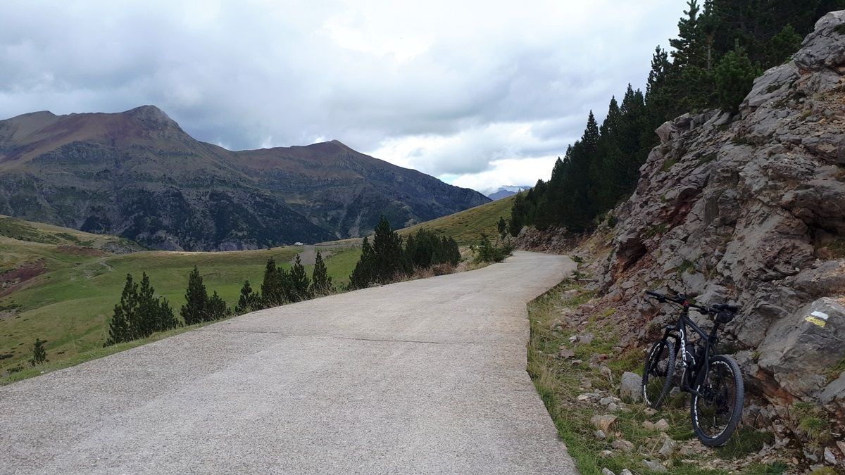 Me apetecía llevar la ruta por aquí como recuerdo a lo que dejará de ser este puerto. Parece que va p’alante el asfaltado del recorrido íntegro que hace de unión entre los valles de Chistau y Benás. Egoístamente y desde mi perfil de ciclista solitario y curioso (y flipao, ya que estamos, que vaya manera de definirme), prefiero la magia del puerto tal y como esta, de tierra (y con ese hormigonado tan característico de la cima). Entiendo que el asfaltado puede traer otras mejoras (además de quedar un puertarraco de la leche para hacer encadenados con la de carretera). Ojala, cuando se vaya la tierra y lleguen los coches, cuidemos entre todos este espacio pirenaico tan bonito.