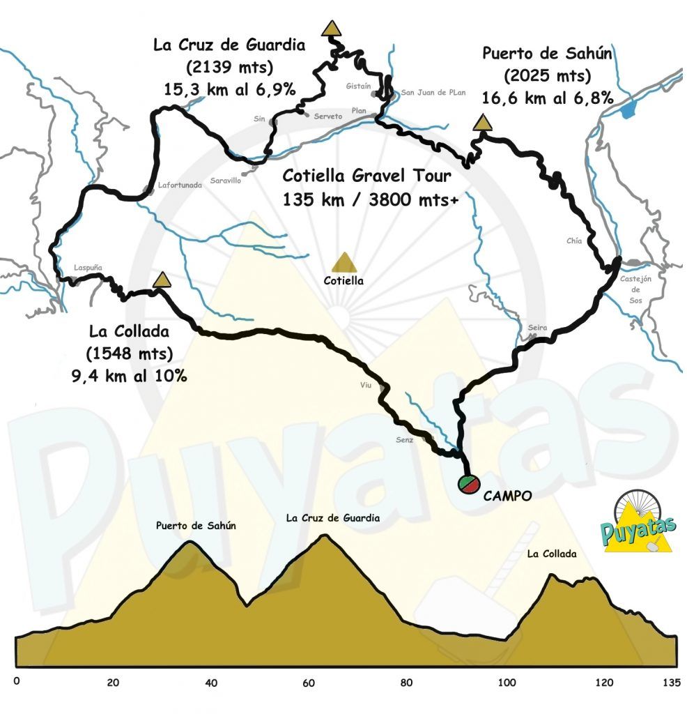 Es una ruta circular, tirando a ser exigente si la haces de una sola tirada. El punto más lógico de salida y meta me parecía el pueblo de Campo, y como soy yo el que diseña la ruta, pues ahí lo he ‘cascao’, aunque puedes organizarte como mejor te venga (solo faltaba…).