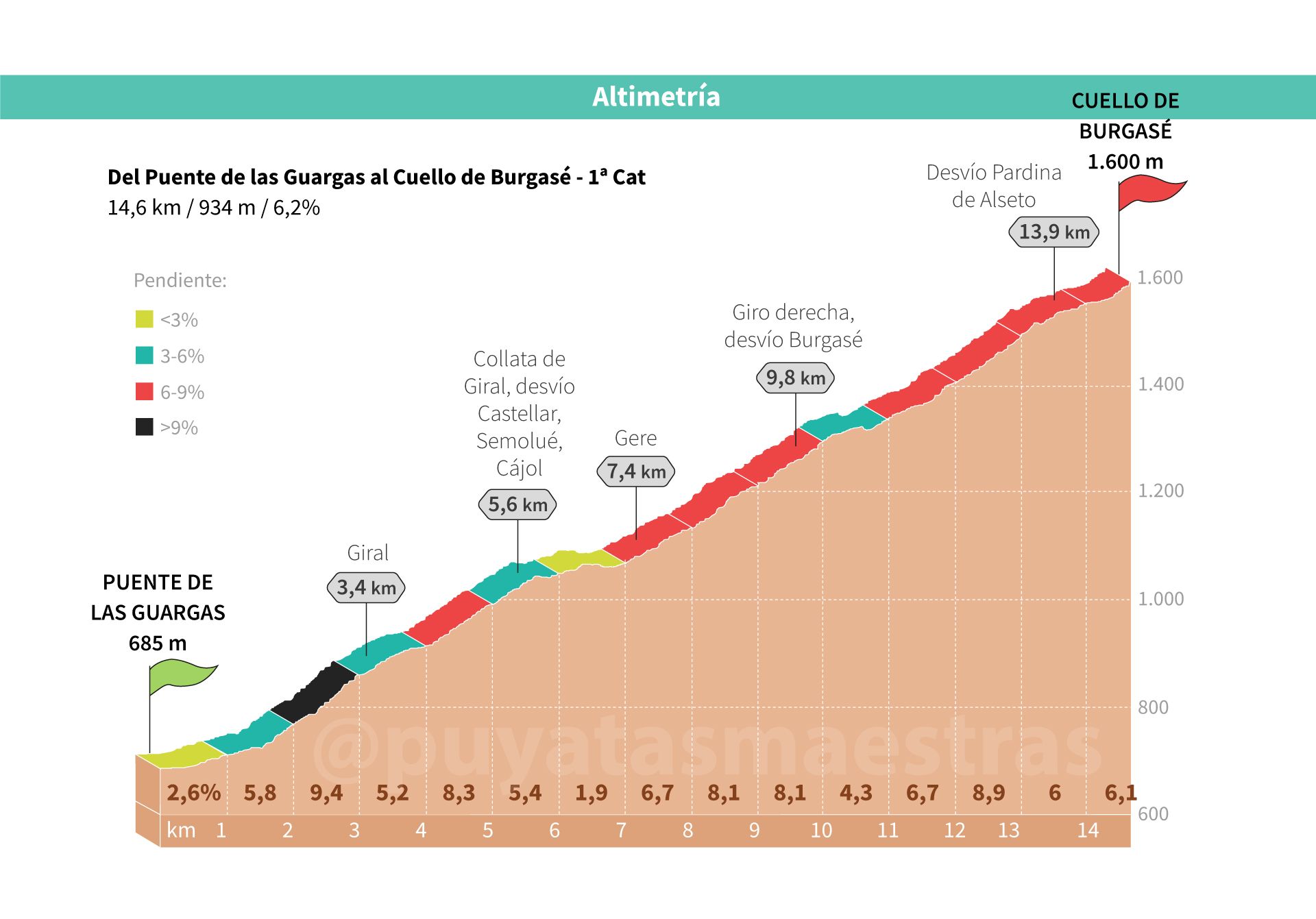 Te viene un largo descansillo hasta cruzar el barranco de Las Planas, donde la pendiente vuelve a picar otra vez. Atraviesas los despoblados de Gere y Burgasé y pasado este último es donde el terreno empeora ya hasta llegar a la cima.