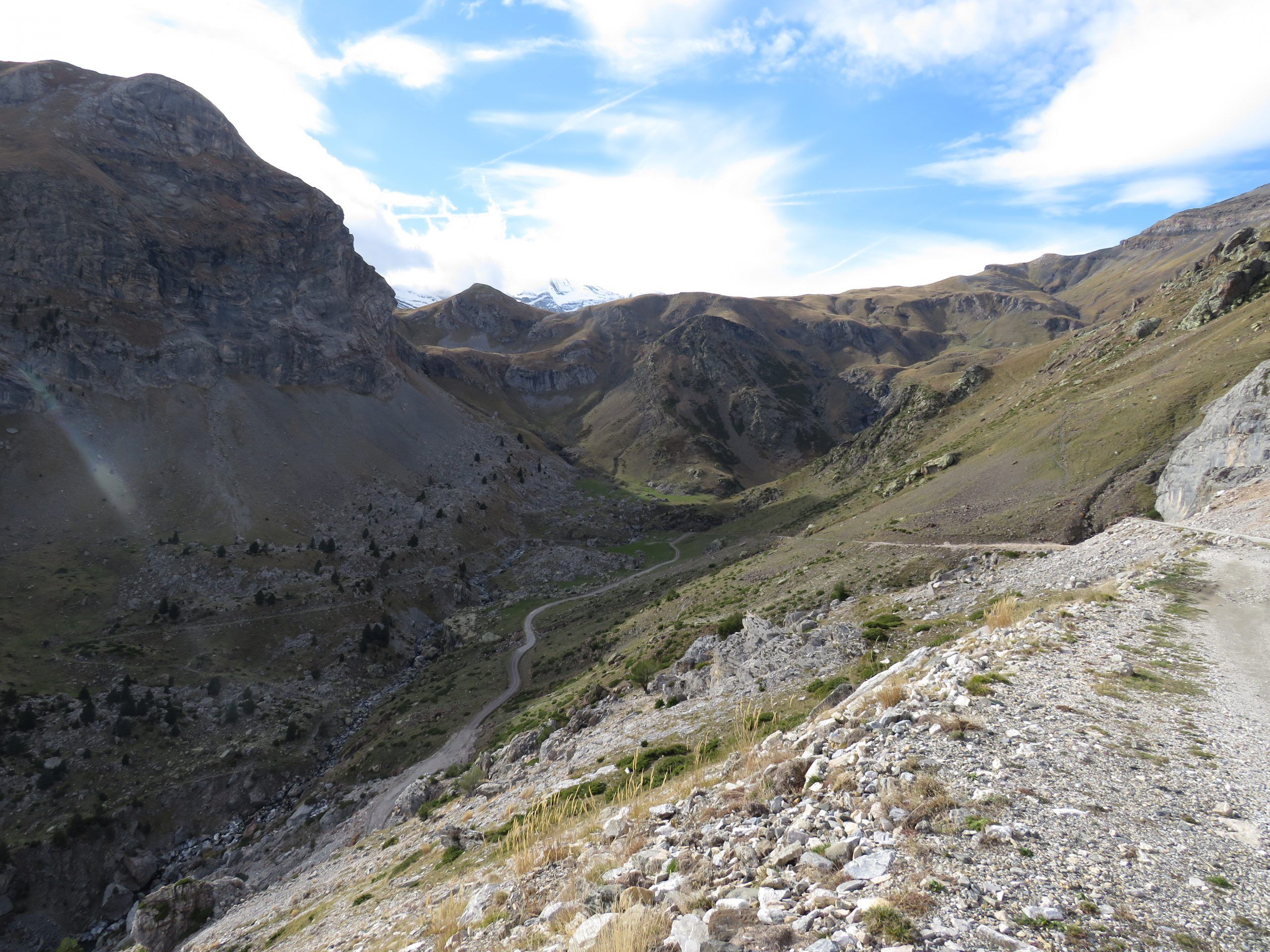 Tras un primer tramo de carretera para llegar al bonito pueblo de Chisagües, pasas a remontar el valle del río Real por la conocida pista de Ruego o pista de Liena. Pendiente más o menos llevadera hasta llegar a un ‘repecho’ de 800 metros que roza el 20% (poca broma). Tras un giro a derechas y en terreno completamente abierto, entras en los anteriormente anunciados últimos y agónicos kilómetros del puerto. Abre bien los ojos (y los pulmones) porque aquí todo es precioso. Si puedes girar la cabeza, veras asomar la silueta de los Treserols (Cilindro de Marboré, Monte Perdido y Soum de Ramond) a tu espalda. A tu izquierda los picos Robiñera y La Munia (justo encima de las minas de Parzán*) y a tu derecha asoman las primeras paredes de Pineta a espaldas de la sierra de Espierba y el pico Comodoto. De verdad, el sitio es más bonito de lo que te puede contar o puedas ver en las fotos. ¡Tienes que venir!