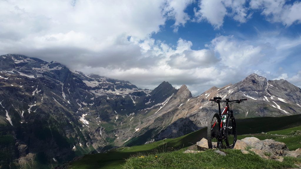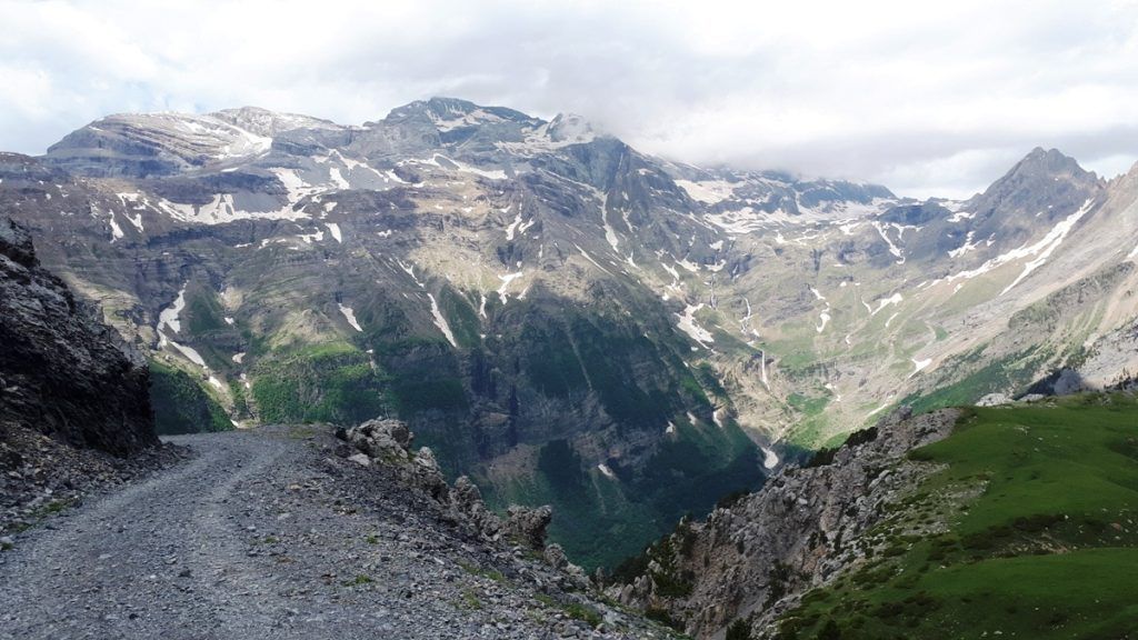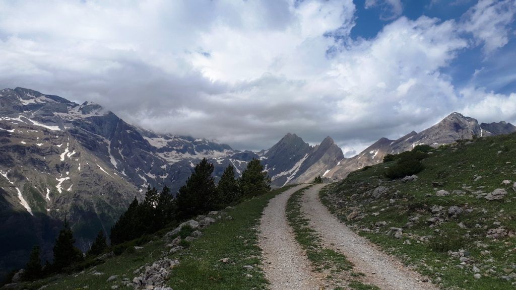Nada más pasar el pueblo, comienza la pista de ‘La Estiva’ y empiezas a pisar tierra. Pista en perfecto estado que básicamente remonta el valle de Pineta por su pared derecha. ¡Vaya espectáculo! Valle de origen glaciar, brutal, muy escarpado y sobre todo bonito de cojones. Situado al este del macizo de Monte Perdido, su cabecera está dentro del Parque Nacional de Ordesa y Monte Perdido.