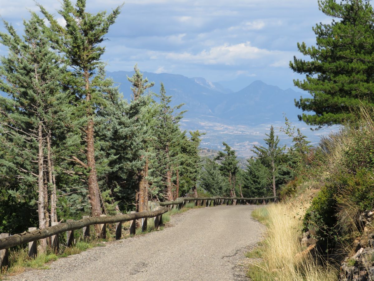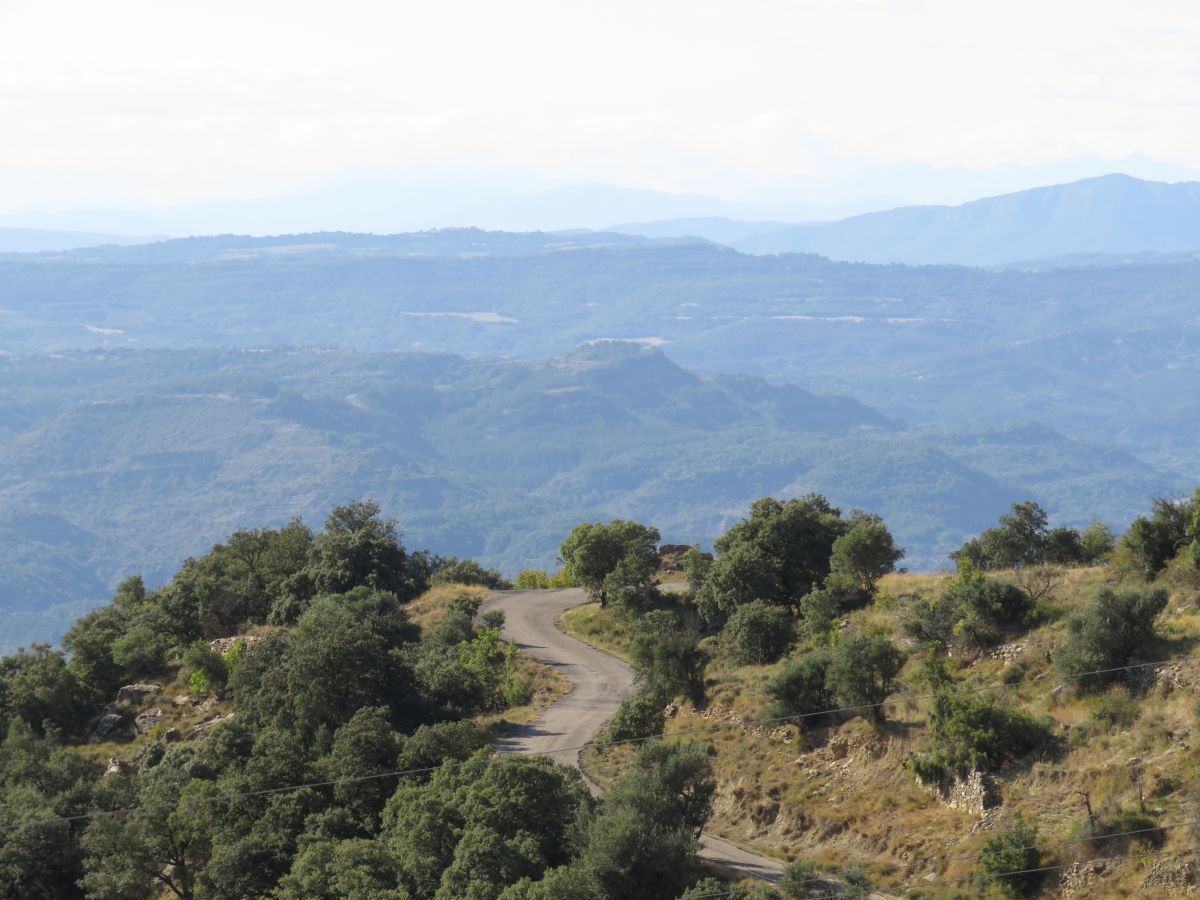 Aquí vas a tener zonas de pendiente algo más altas, sin llegar a ser duras del todo, tampoco asustarse. Podrás estirar las patas con otra bajada, mucho más corta que la anterior pero algo más cañera (cosa que si vuelves por el mismo sitio, se va a convertir en un repecho bastante cabrón). Pisarás tierra, una vez que llegues al desvío del observatorio astronómico del Montsec, poco antes de llegar a los 24 kilómetros de ascensión, para terminar coronando el puerto con unas vistas brutales a 360 grados.