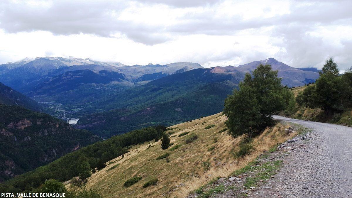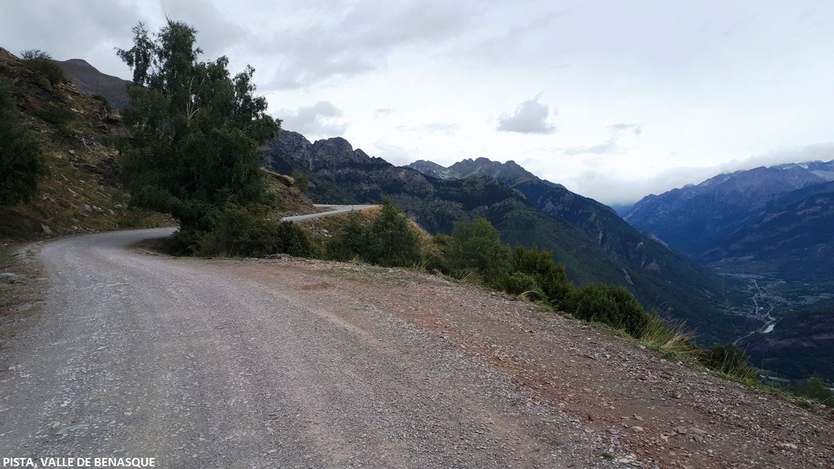 A partir de aquí la pendiente sube, pero se va a mantener bastante constante. No vas a encontrar ningún ‘pechugazo’ y el terreno está perfecto. Entre el bosque y con un pequeño tramo de cemento vas ganando altura y, después de unas cuantas curvas de herradura, las vistas sobre el valle de Benasque son oro molido. ¡A disfrutar sudando!