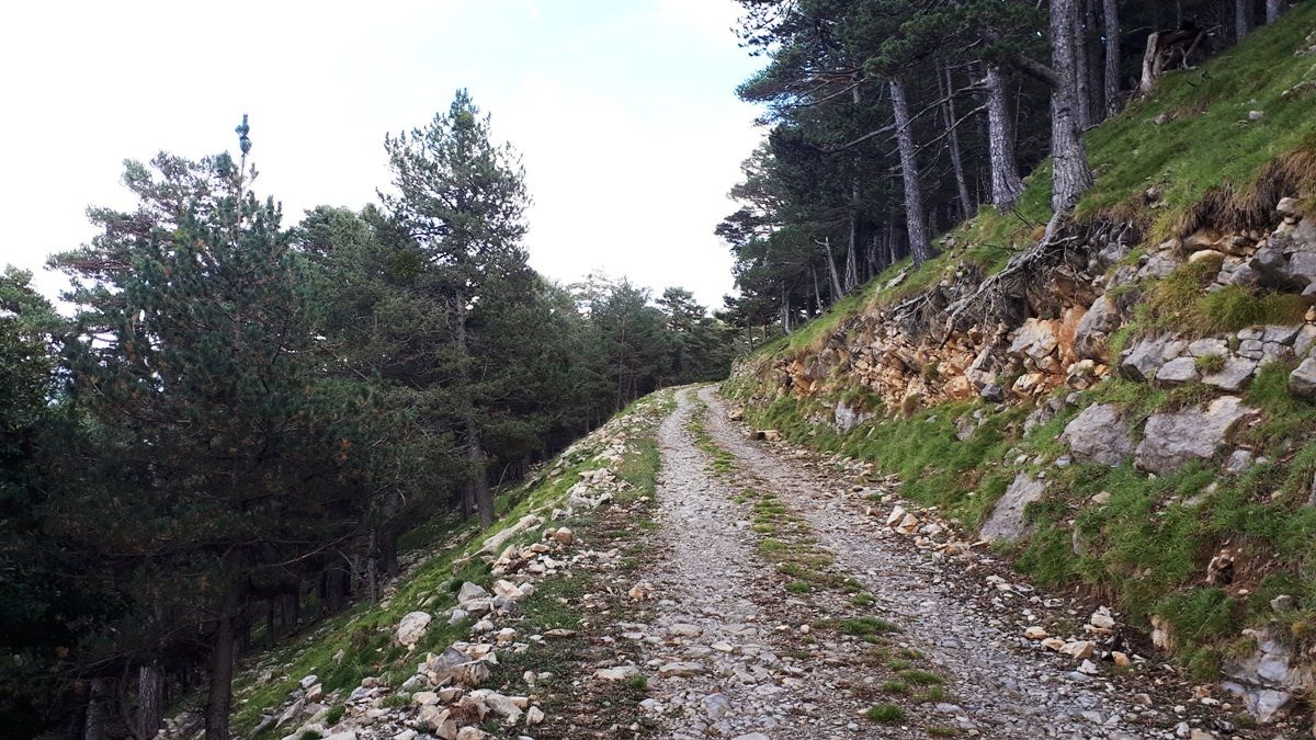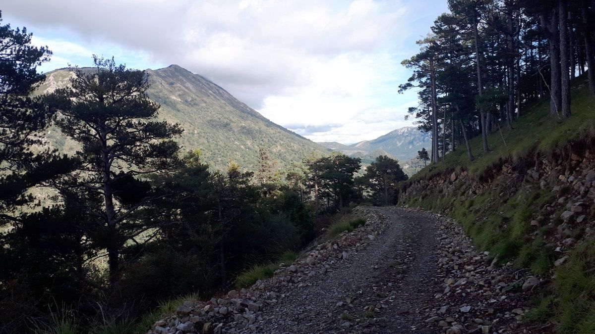Puerto recogido, vas ganando altura en línea recta protegido por el bosque. El barranco de la Garona te queda a la derecha y la sierra de Cervín, que es a donde te diriges, a la izquierda.