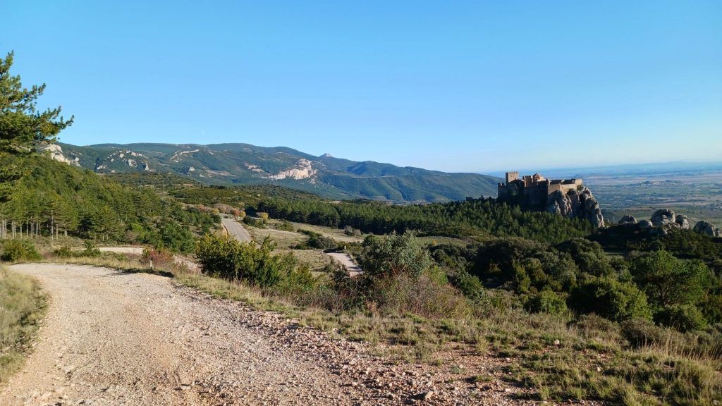 La subida al castillo de Loarre (la de veces que lo estoy nombrando) es fácil describirla. Corta y dura. Asfalto perfecto, donde los picos altos de pendiente hacen que la bici se agarre de narices. Qué bonito sería terminar aquí una etapa de la Vuelta a España. Información sobre este lugar tienes a patadas a nada que te de por buscar en Google, así que no te voy a contar ninguna película (que manera de hilar las cosas), y te dejo que investigues tú (si te apetece, claro).