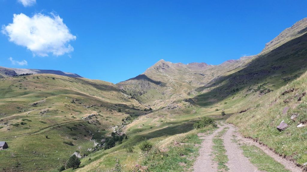 Después del esfuerzo, aparecen las Bordas de Viadós, con el refugio a la izquierda. No lo he comentado antes pero vas a ver bordas durante toda la subida. Parece que te van haciendo pasillo. El refugio en sí, data de los años cincuenta, y te lo vas a encontrar abierto a día de hoy si te apetece echarte una birra, comer algo, o pernoctar. Te va a venir bien, si quieres seguir explorando el valle.