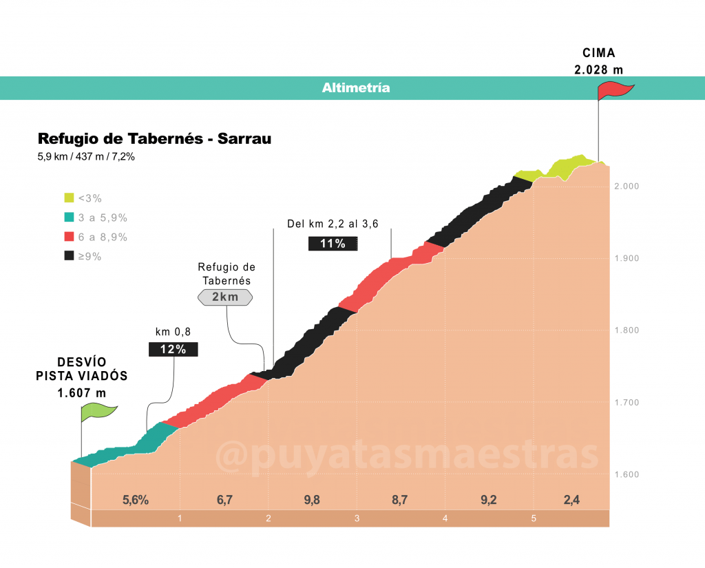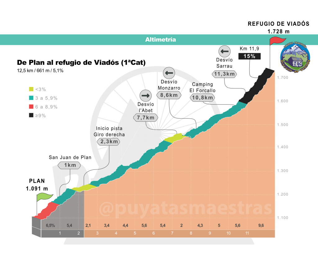Y para que veas lo bien que hilo las cosas, esta altimetría viene con regalo. Concretamente regalos en forma de tres altimetrías más. Las subidas a la borda del Monzarro, la balsa de L’Abet y la zona de Sarrau pasando por el refugio de Tabernés (todas ellas desvíos de la pista principal a Viadós). Tenemos entonces, un puerto con tentáculos, el ‘Doctor Octopus’ de las puyatas. Cuatro altimetrías en una, para que puedas dibujar tus rutas por este rincón del Pirineo aragonés. Ya te da para seguir explorando eee. Si quieres alguna idea más, la Cruz de Guardia, el ibón de Plan, puerto de Sahún, etc.