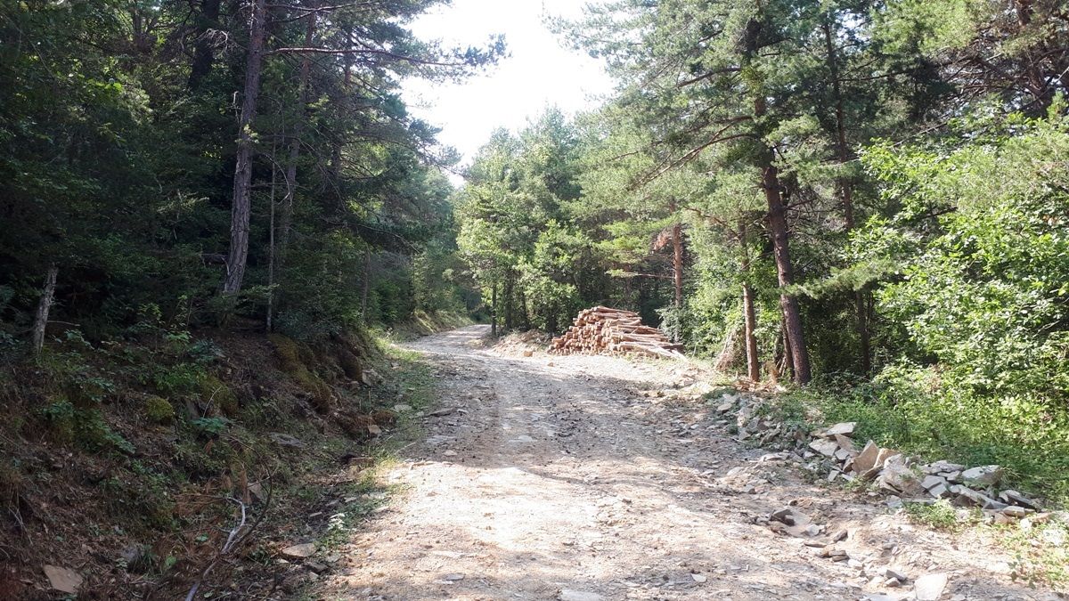 En el pueblo, giro a la izquierda y empiezas a pisar tierra. A partir de aquí la subida se hace constante y la pendiente media sube lo suyo, haciendo que hasta la cima sea un puerto exigente. Recuerdo ver montones de troncos recién talados a los lados del camino en esta parte del puerto y sobre todo me viene a la cabeza el olor de los míticos lápices Alpino. A eso me olía esta zona, como si no dejara de sacarle punta a uno de ellos.