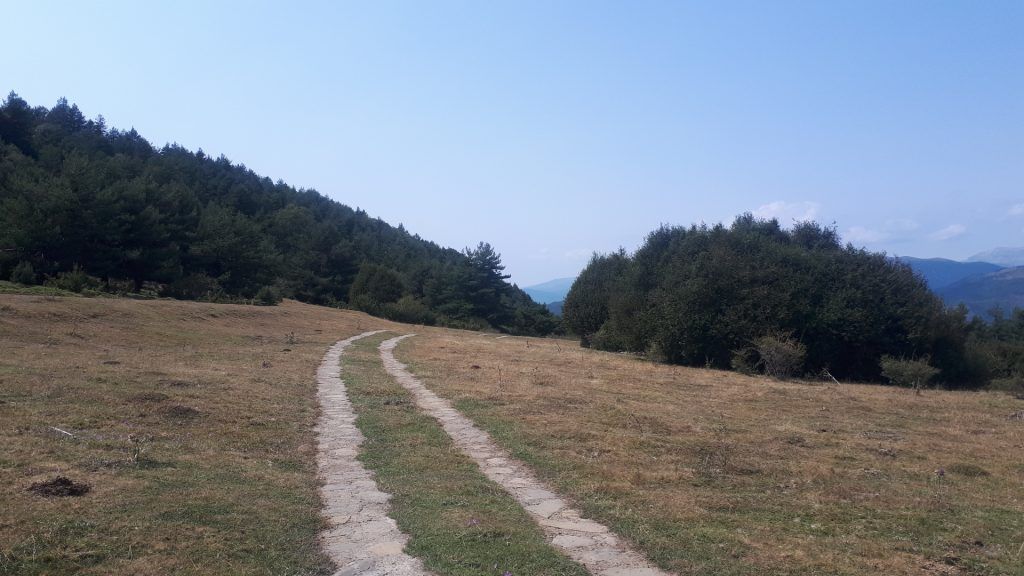 ¿Y qué pasa con el final del puerto?. Un empedrado que ríete tú de los adoquines de la Paris Roubaix. En lo alto de la sierra y en mitad de la nada, ciertamente fue una sorpresa. No sé porque cuando veo este tipo de calzadas siempre me imagino a Astérix y Obelix (menhir en mano) de vuelta a la aldea gala después de visitar al César. Parece que ¡están locos estos romanos!